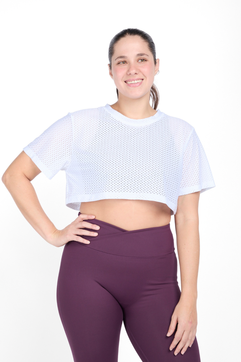 El Flow Crop en blanco Bianco es frescura y movimiento en un diseño liviano. Su silueta corta y suelta lo hace perfecto para llevar sobre tu top deportivo o como pieza protagonista.