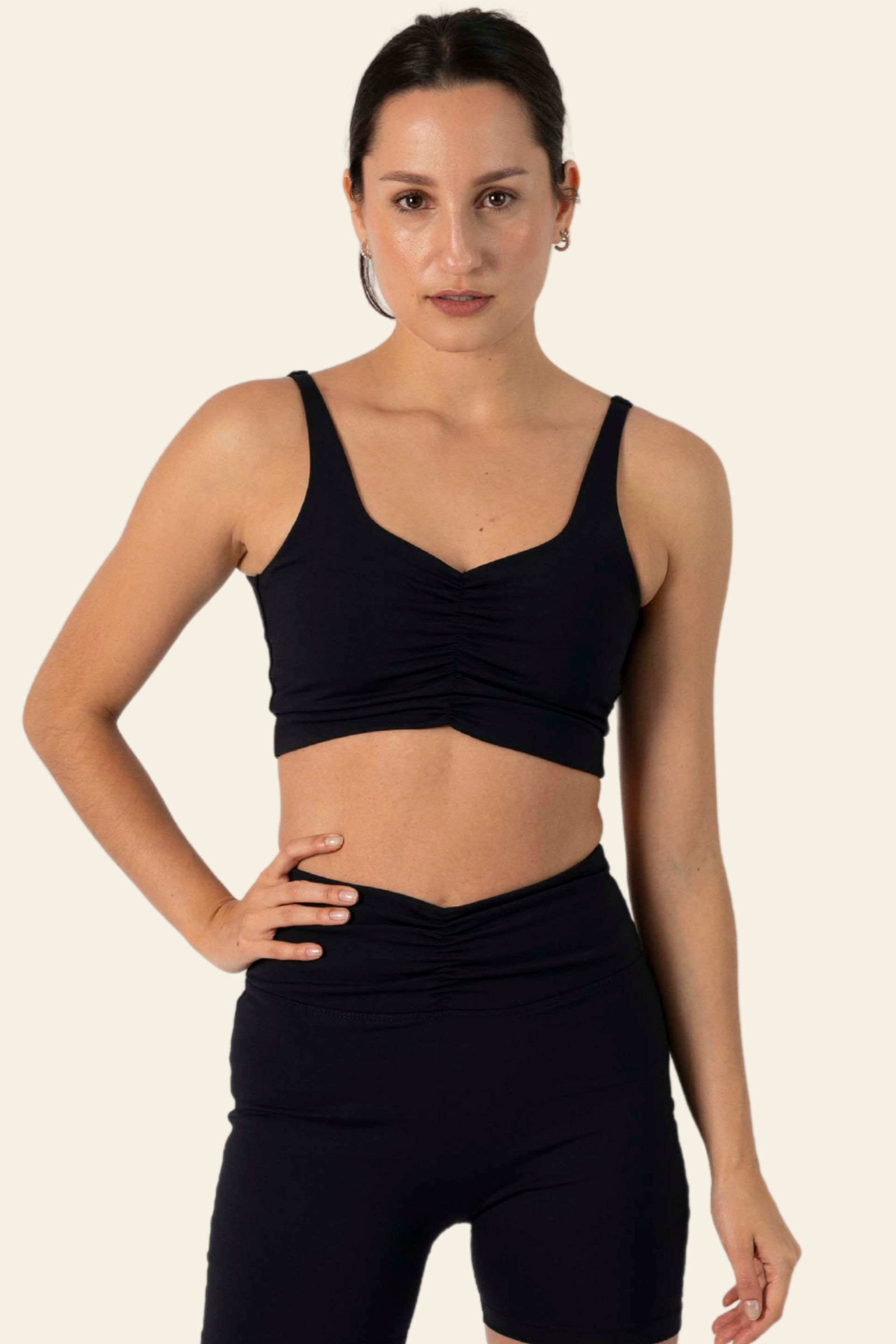El PLIÉ BRA está diseñado para destacar tu figura con su frente fruncido y un elegante escote en la espalda. Ofrece alto soporte para que te sientas cómoda y estable durante entrenamientos de bajo o alto impacto. Inspirado en el ballet, combina funcionalidad con un toque de sofisticación.