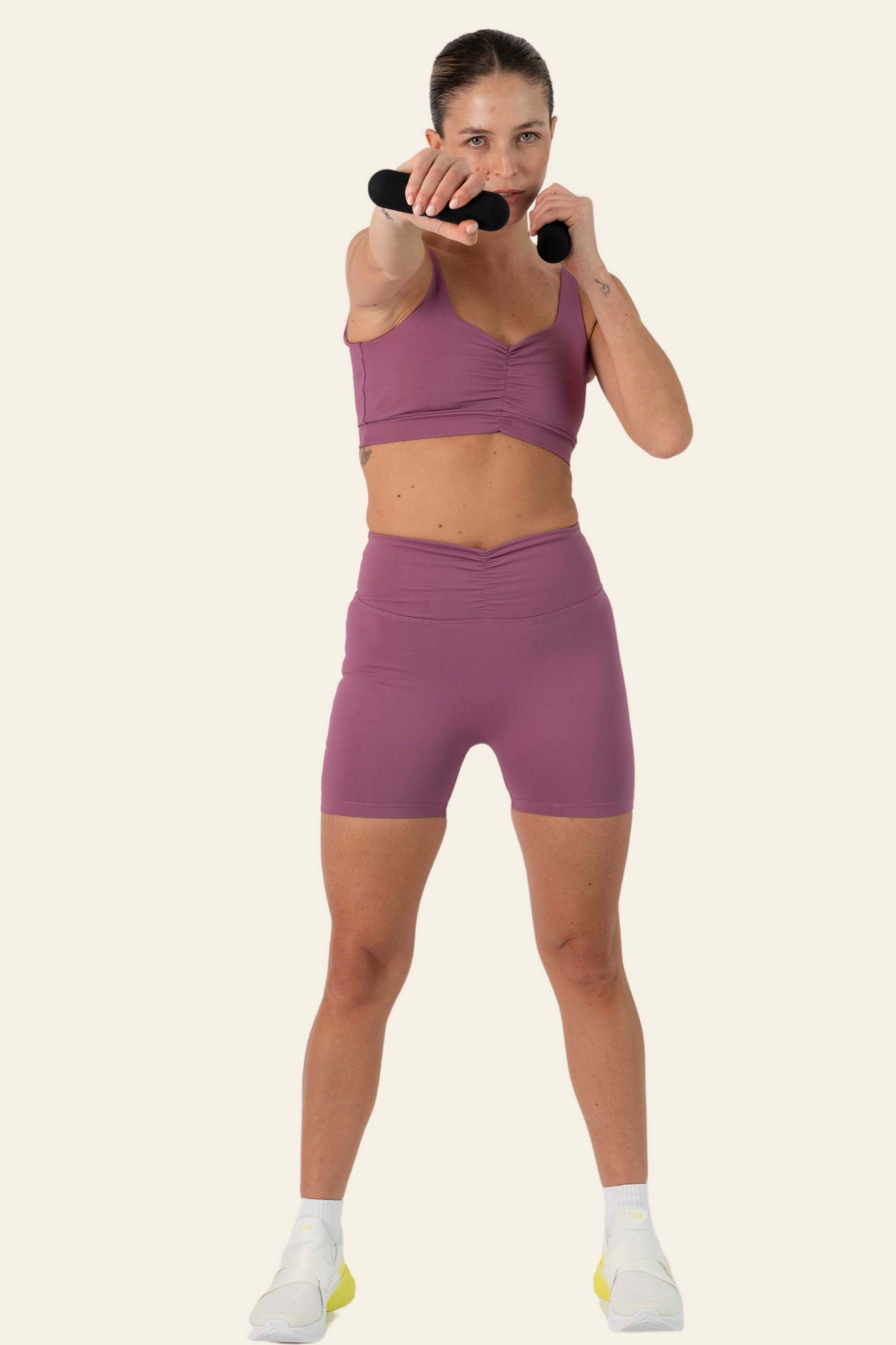 Los PLIÉ SHORTS están diseñados para quienes buscan combinar comodidad y estilo en su rutina diaria. Su cintura con fruncido al centro realza tu figura, mientras que el bolsillo trasero oculto es perfecto para llevar tu celular mientras entrenas o sales a caminar. Inspirados en el ballet, estos shorts son versátiles y modernos, ideales tanto para entrenamientos como para looks casuales con un toque de elegancia.